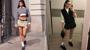 Естетика міської школи. Образ містить елементи скромної дівчачої шкільної естетики (шотландські спідниці, коміри з рюшами та рожеві банти) і поєднує їх із вуличним гранжем (пірсинг, туфлі на підошві та сітчасті слої). І все це поєднано з білими гольфами. Dior підтримав тренд одяг, як у школярок на своєму показі в Сеулі.