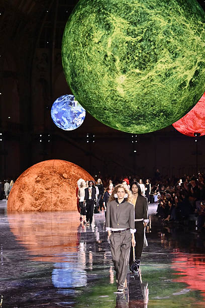 The venue, transformed into a futuristic planetarium, shimmered with the glow of imagined orbits. Guests were greeted by light that felt like dawn on another planet — somewhere between Venus and the Moon. The soundtrack pulsed with quiet electronic rhythms, whispers, and breaths — music that seemed to breathe with the audience. Then, the first model appeared: walking in a silvery tweed that reflected the light like stardust. Chanel had opened a portal to the future.